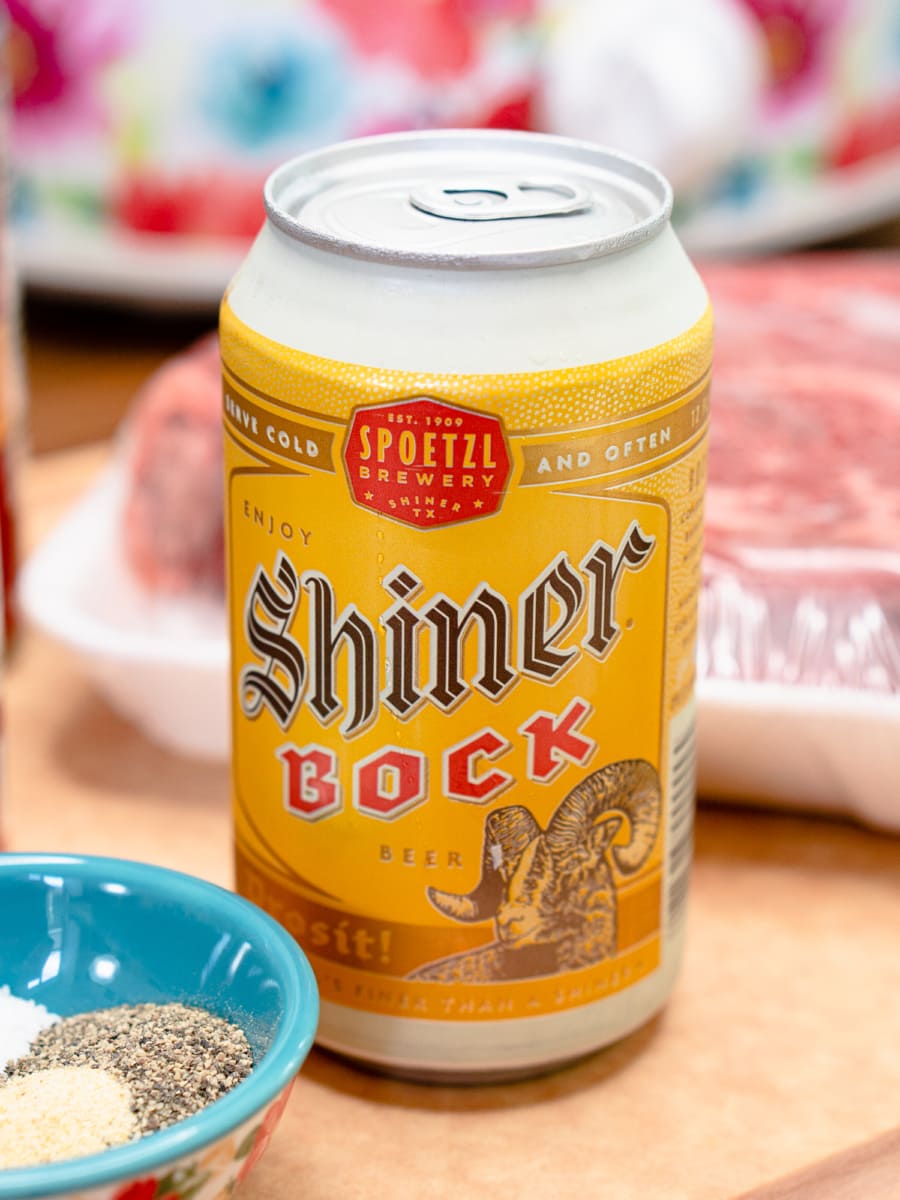 - 1 can dark lager beer 12 ounces, dark lager or stout