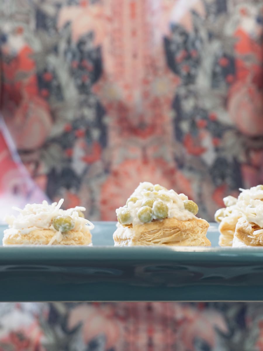 For fancier reunions, she would sometimes order tiny puff pastry cups from a local bakery and fill them with the chicken dip. These were always a crowd favorite! These puff pastry cups can now be found in the frozen dessert section of supermarkets. The ones I used are Pepperidge Farm and I got them at Walmart.