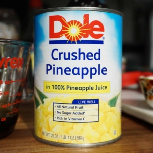 - 1 can crushed pineapple 20 oz, in 100% pineapple juice