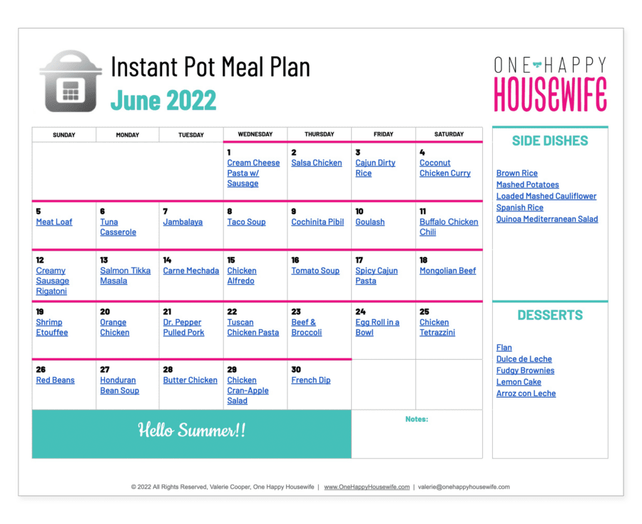 - June 2022 Instant Pot Meal Plan