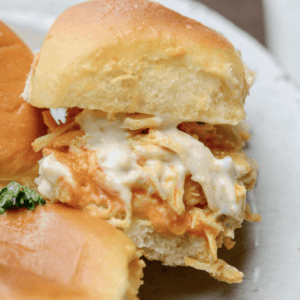 from Adventures of a NurseTender pulled chicken with a blue cheese hot sauce that is the perfect mix of spice and a splash of sweet.