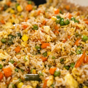 This easy recipe for fried rice, takes already cooked white rice and quickly transforms it into better than takeout vegetable fried rice with egg. It’s perfect for busy weeknights and it’ll be enjoyed by the entire family. You can serve it as a side dish or it can be a stand alone meal.