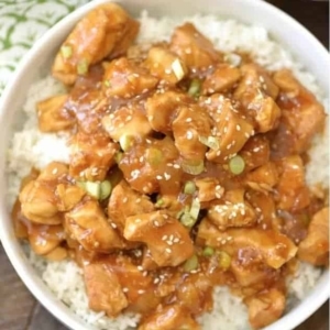 from Cooking with KarliEnjoy a bowl of tender chicken, crunchy veggies, and rice covered in a homemade Teriyaki sauce.