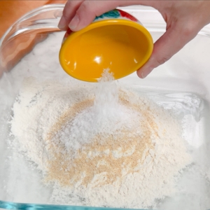 Add the cassava flour, garlic powder, onion powder, and salt to a shallow dish or bowl and whisk the ingredients together until they are thoroughly blended.