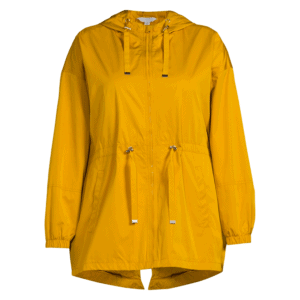 This rain and wind-resistant lightweight jacket is a must-have! I love that it has a hoodie and an adjustable drawstring at the waist. It comes in sizes up to 3X and several beautiful colors.